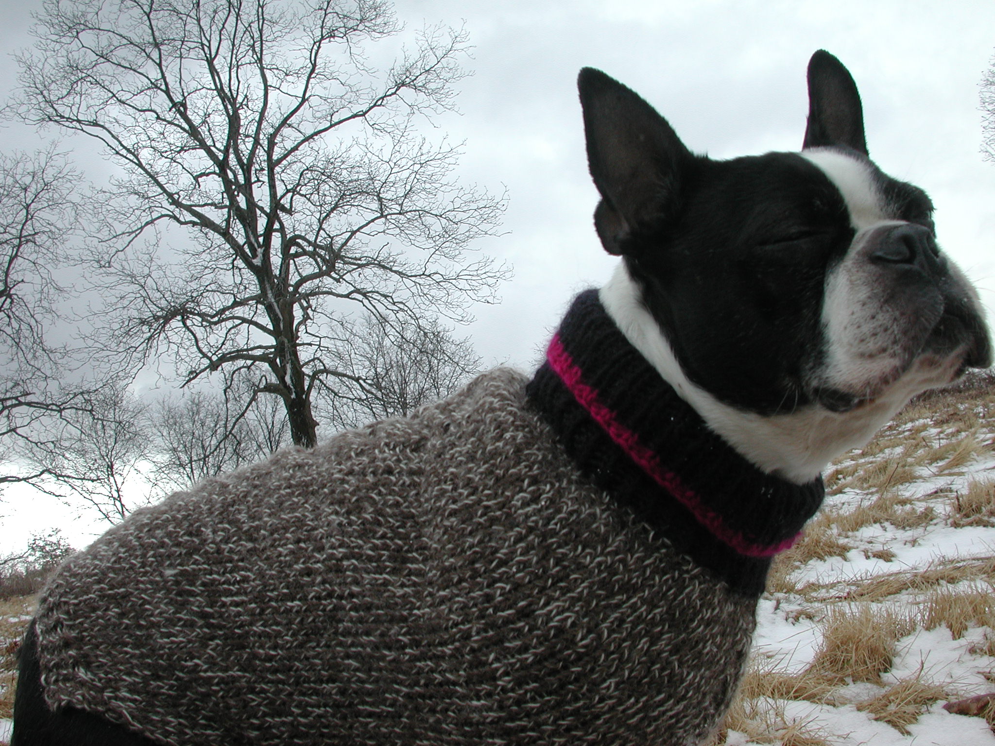 Ah, a deliciously warm hand-knit 100 percent wool sweater. Chewy models in a Connecticut hay field, now dedicated open space.