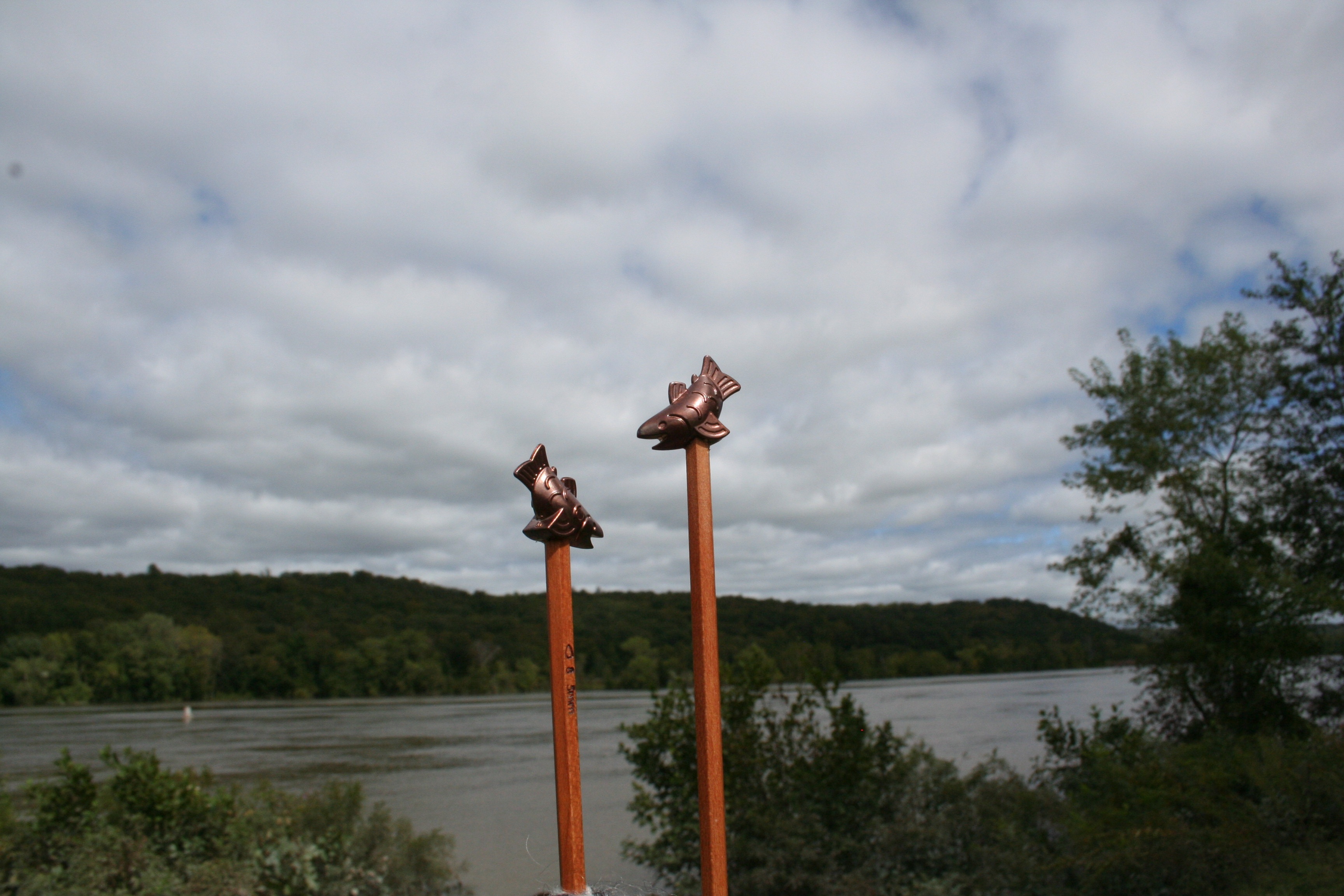 Fish sticks – no, really, these beauties are handcrafted works of art by Indian Lake Artisans., made in Michigan, U.S.A. The needles shown here are size 8, 14-inch, made of cherry wood.