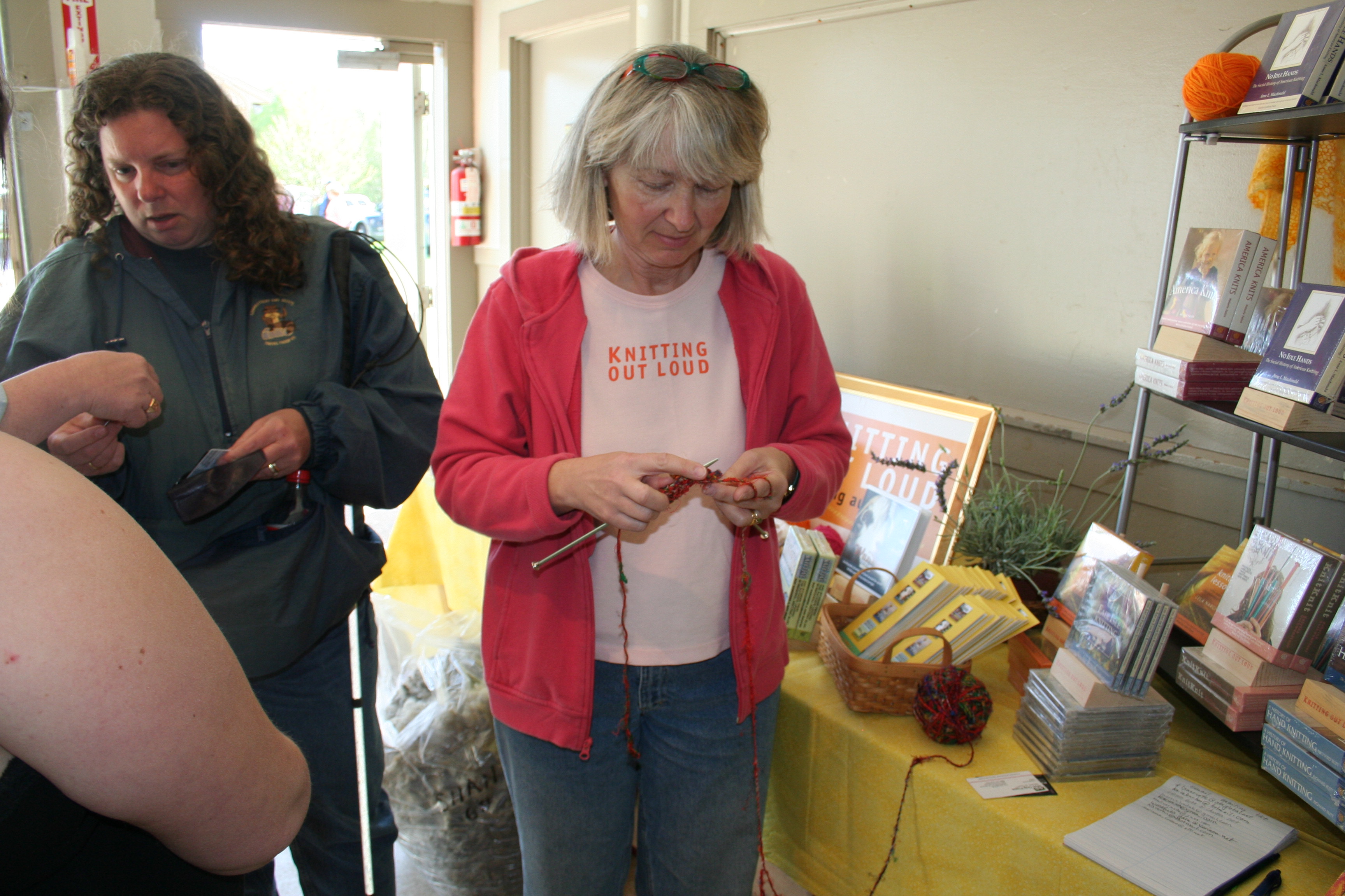 Sari silk yarn and garter stitches at the Knitting Out Loud audio book booth. Published April 25, 2010 at 3456 × 2304 in Sari silk yarn and garter stitches at the Knitting Out Loud audio book booth. ← Previous Next →